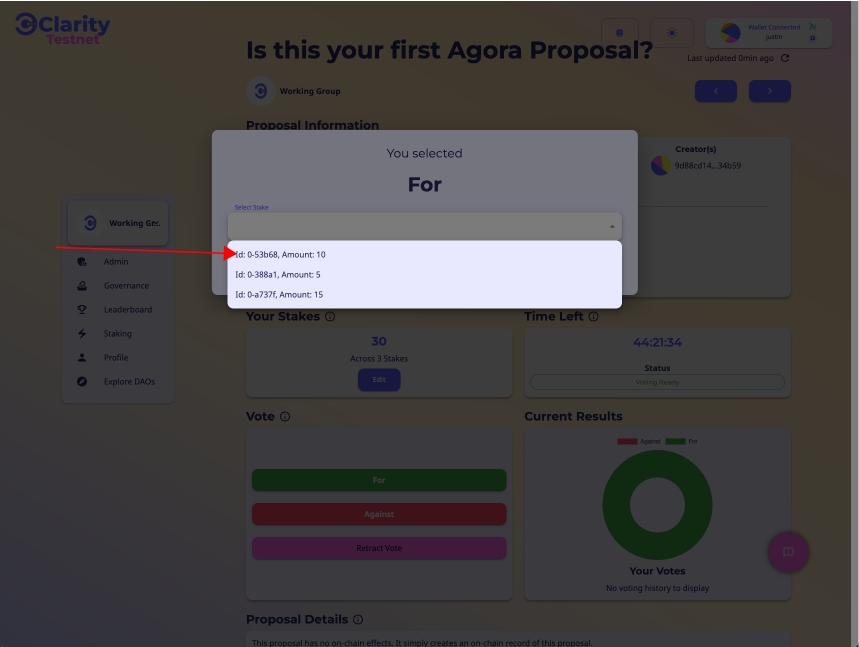 ステップ3:この投票に使用するステークを選択します。
