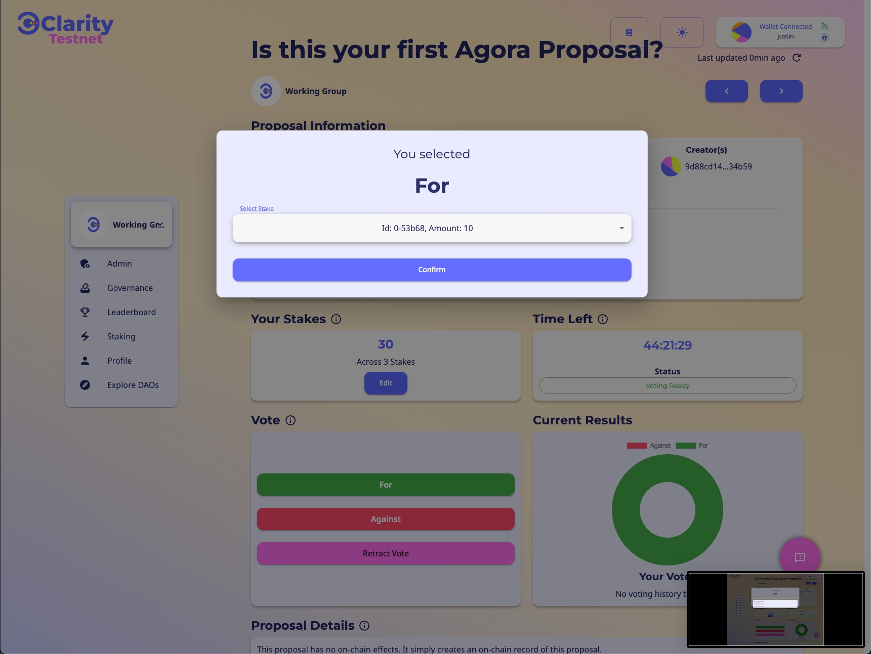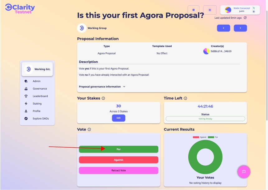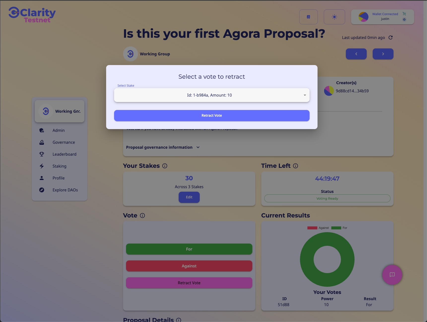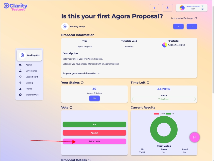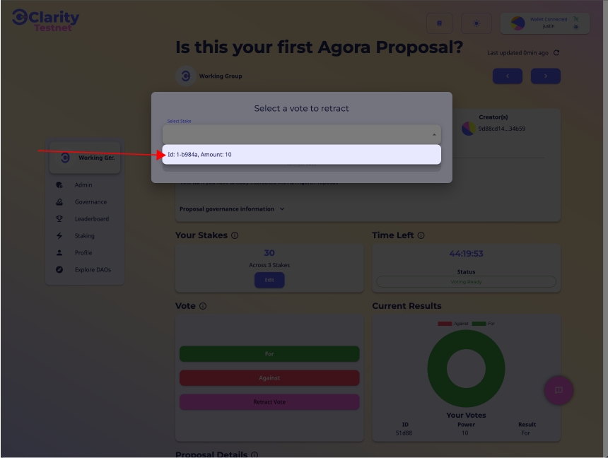 ステップ1: 投票した提案で、「投票を撤回する」をクリックします。