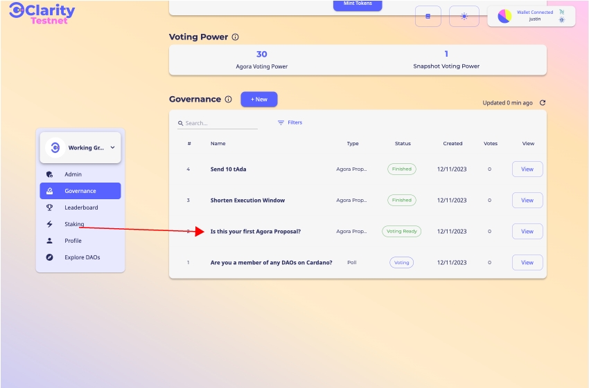 ガバナンスのページに移動し、投票する提案を選択します。