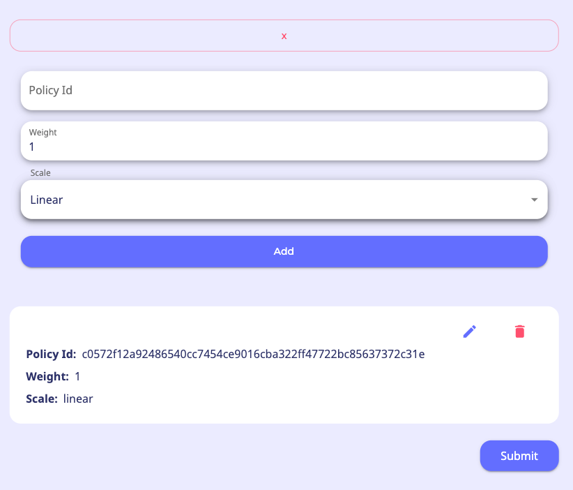 注:変更内容(ガバナンス トークンの追加/編集/削除)は、「提出」するまで永久に保存されません。