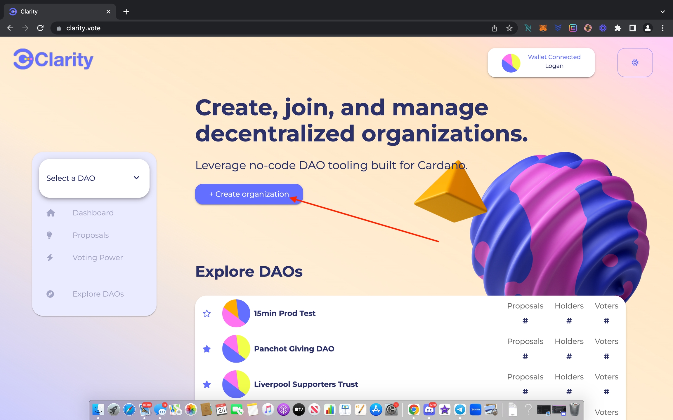 ステップ 1: 「+ DAOを作成」をクリックします。
