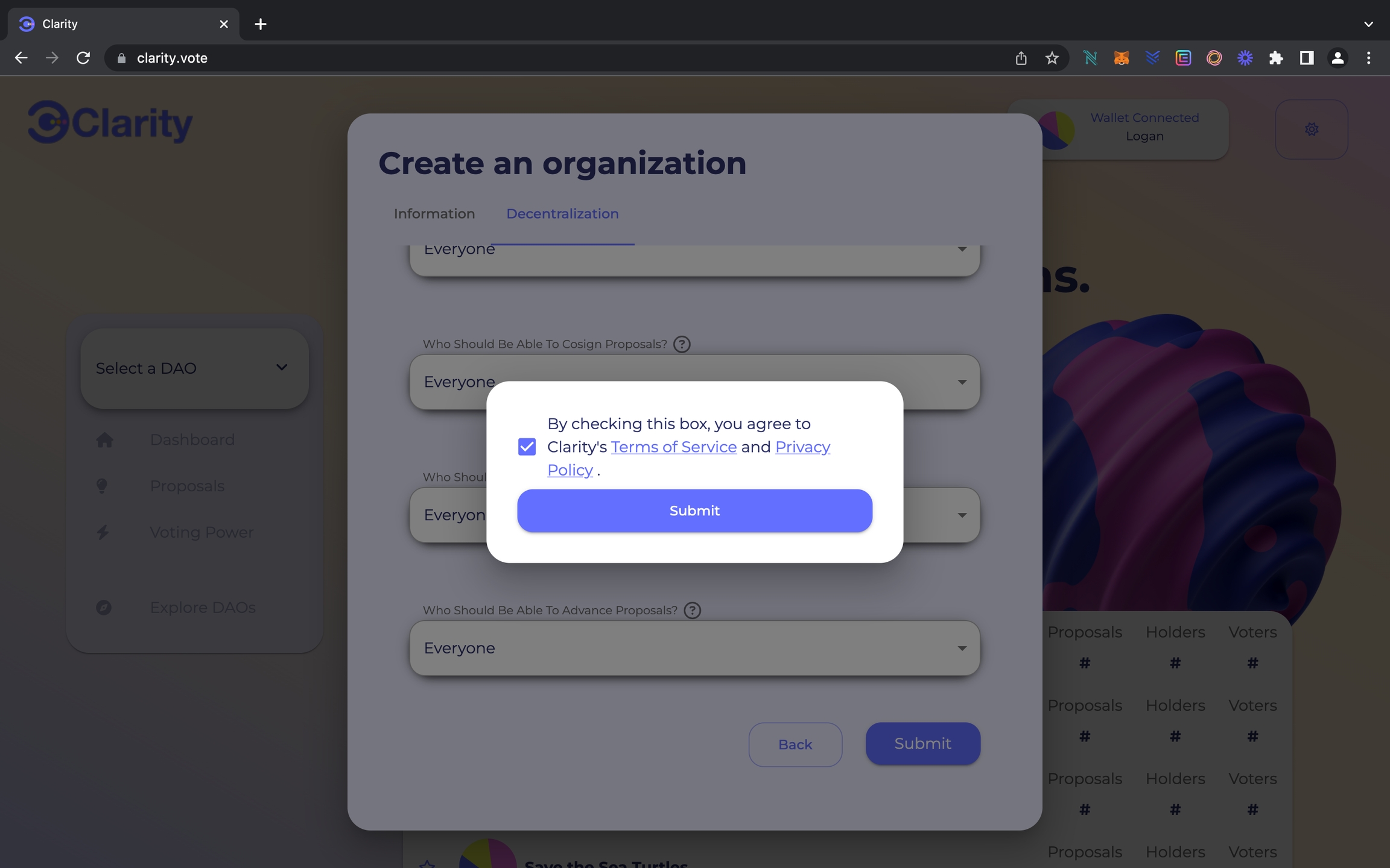 ステップ3: 利用規約を読み、同意してDAOを提出します。