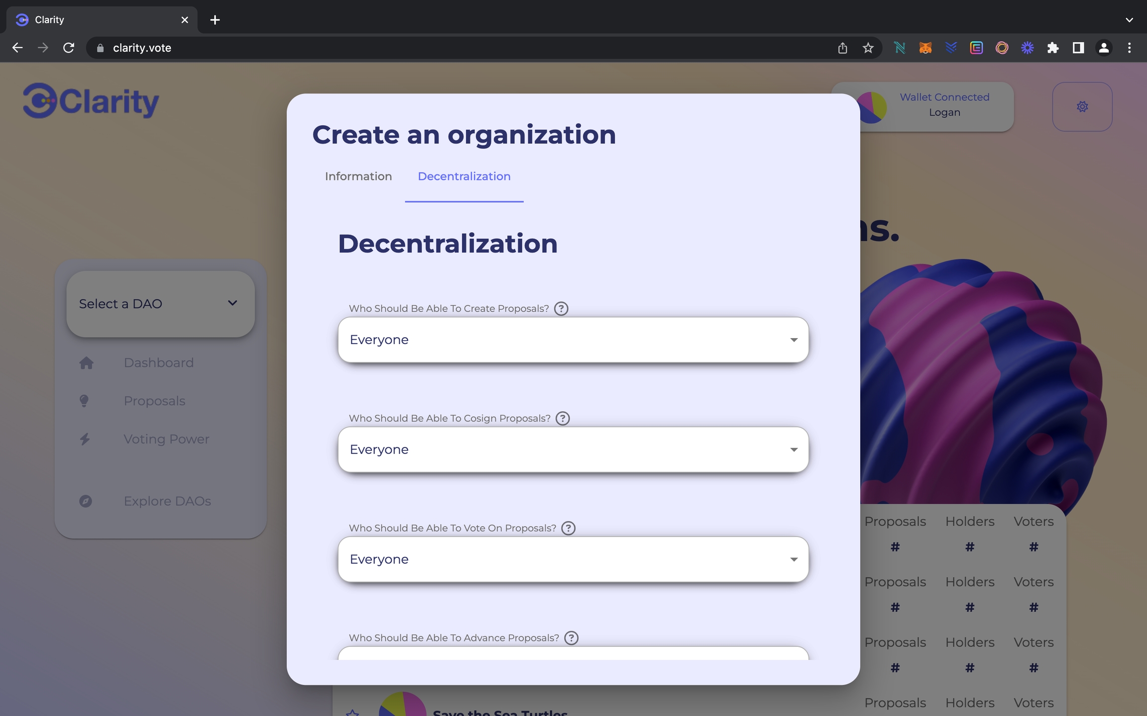 これにより、DAOはClarityで開催される投票の作成や投票を管理者ユーザーのグループに制限することができます。