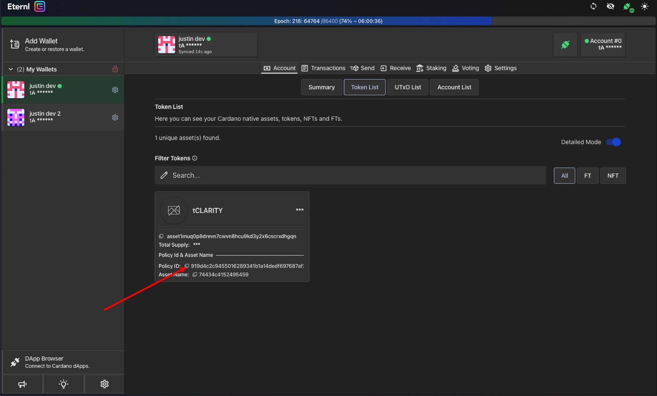 トークンのポリシーIDを見つけるには、そのトークンを保持しているCardanoウォレットを使用するのが最も簡単です。