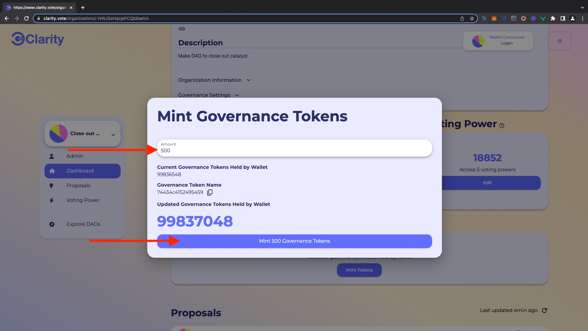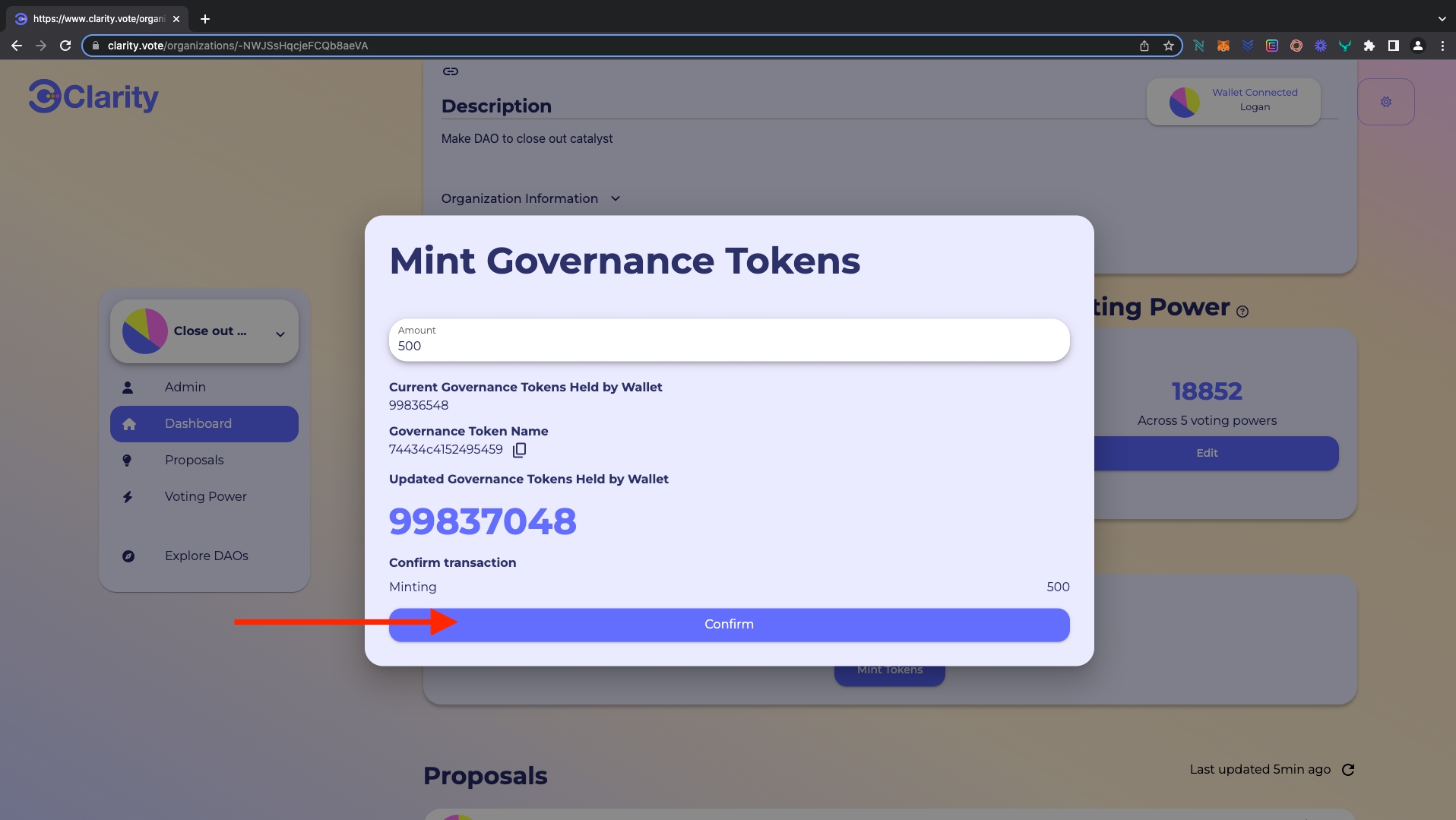 ステップ1: DAOのダッシュボードページで、「Mint トークン」をクリックします。
