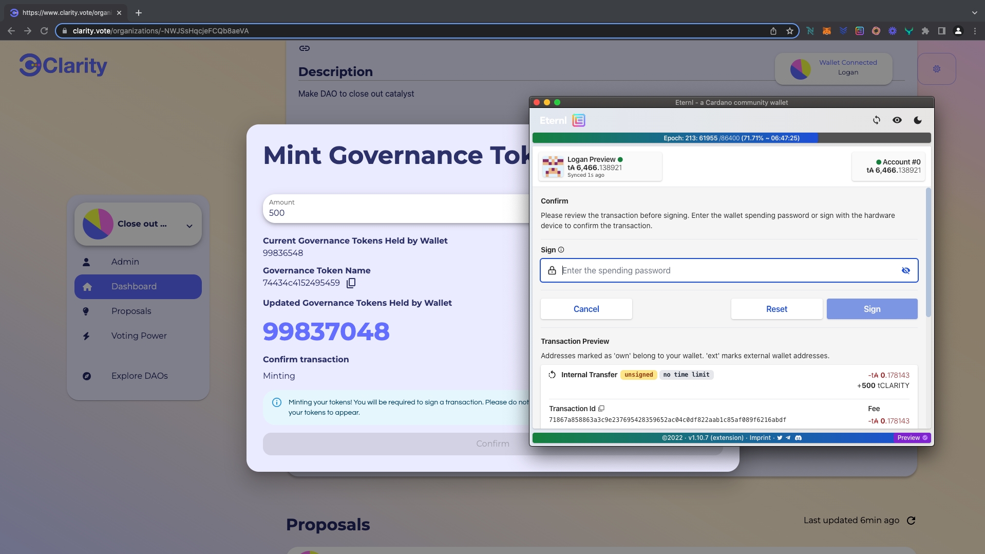 ガバナンス トークンのミントは、Clarity の Testnet バージョンに限定されています。